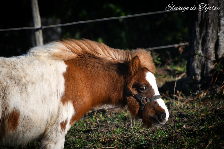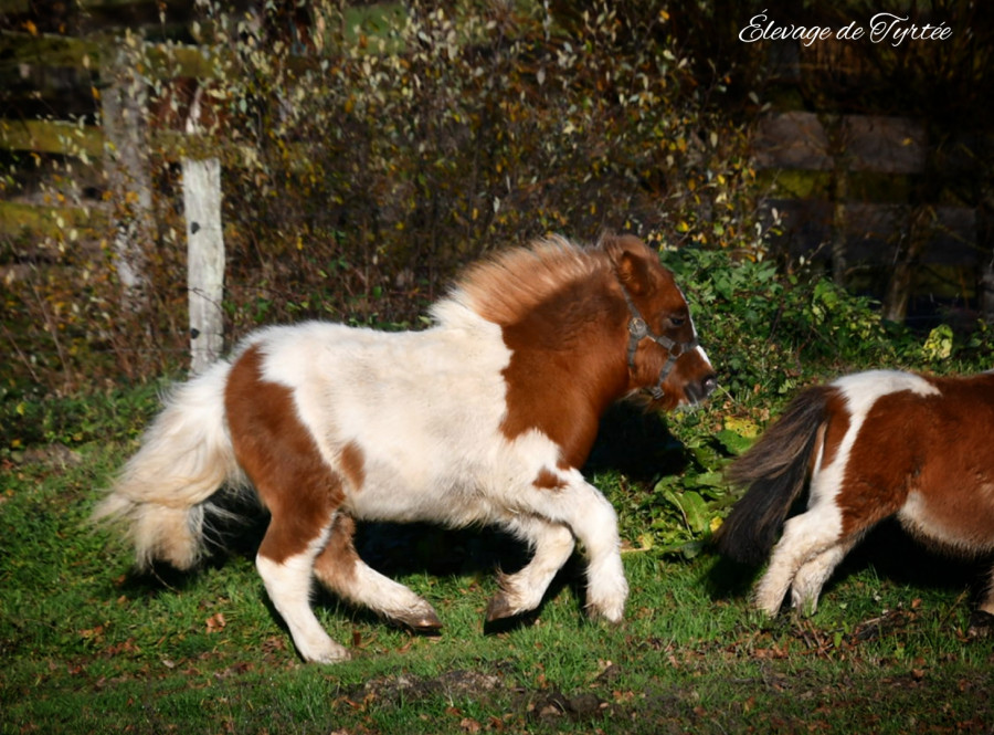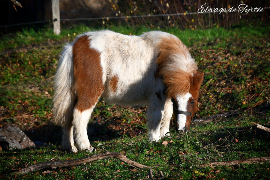 Poulain shetland pp, mâle, pie alezan standard (devrait toiser 102/103 cm adulte)