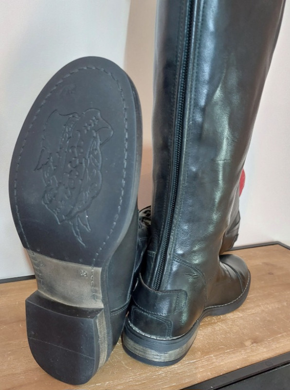 Tous les modèles sont neufs, jamais portés, dessus cuir vachette, Doublure intérieur cuir, semelle élastomère monobloc étanche et antidérapante.