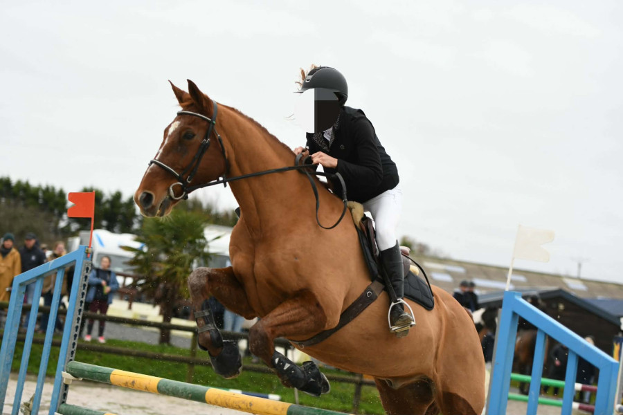 ?Cheval calme et gentil, très puissant, adore sauter, très franc et respectueux à l'obstacle, ne regarde rien, début de piaffer et passage, change de pied