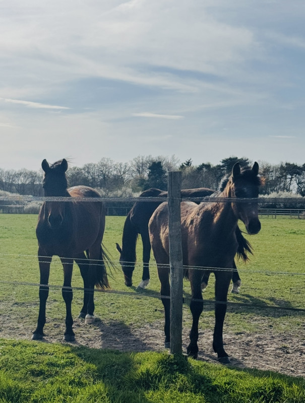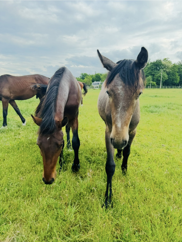 Un pré simple mais dont l’attention est maximale, même si nous estimons que c’est sensé être le minimum : toujours du foin et de l’eau à disposition, pas de ficelle qui traîne, pas de clôture laissée à l’abandon, super entente entre chaque propriétaire: surveillance mutuelle des chevaux des autres, communication entres chaque propriétaire en cas de problème ou de petits bobos, nous nous rendons des services lorsqu’un de nous ne peut pas venir, nous voulons que nos chevaux soient traités avec respect quoiqu’il arrive par toutes les personnes rentrant sur la pâture: pas de gestes violents ou brusques, et nous cherchons une personne ayant ces mêmes valeurs pour intégrer notre équipe .
