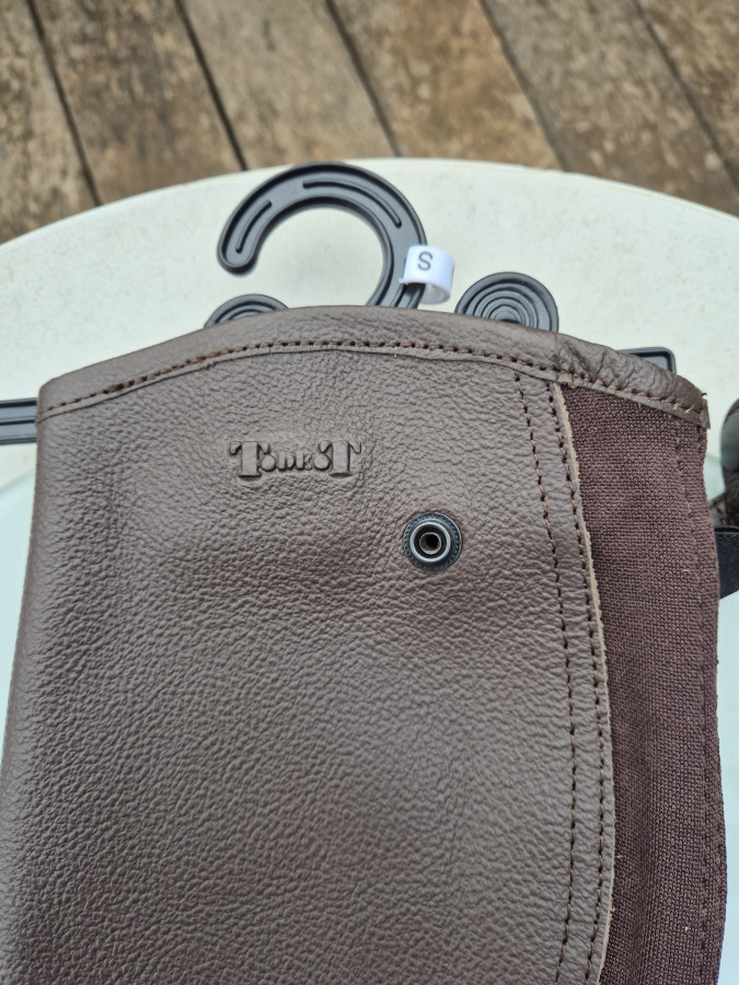 vends mini chaps en cuir havane adulte taille S marque T de T ils sont neufs avec étiquette