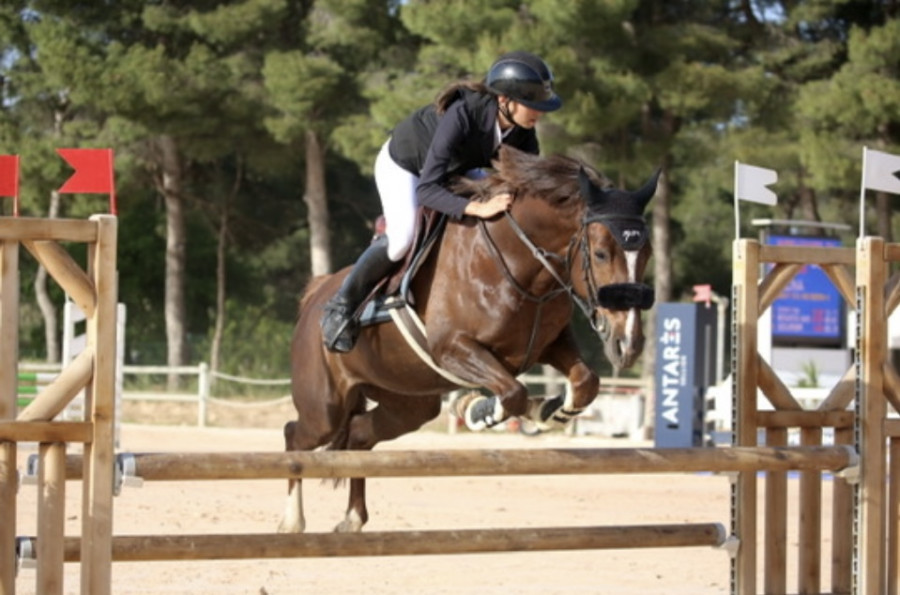 Modèles & Allures à 2 ans et au Sologn’Pony (Championne régionale Ile de France, 3e au Lion d’Angers) et également à 3 ans (3e Régionale Mâles et Femelles confondeus aux 3 ans montés de Fontainebleau, championne à tous ses concours locaux avec toujours 16.50 ou 17 de moyenne à l’obstacle)