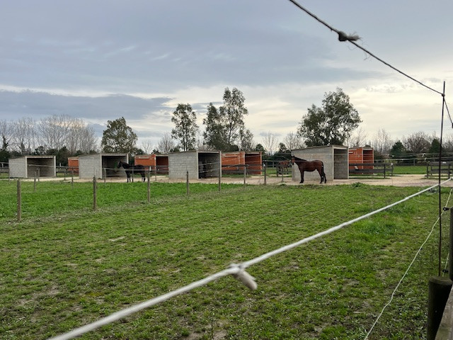 * 6 grands paddocks (12 x 50) avec abris (4,5 x 3,5)