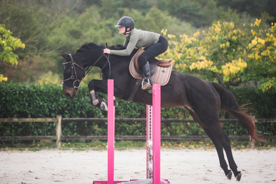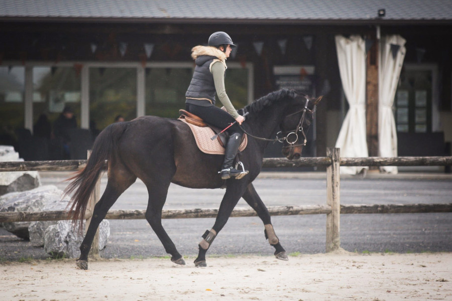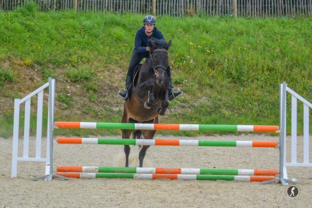 SF par Korrigan du Gevaudan et mère par Dissident D’elle, 14ans, 1m60 à peu près ,2 poulains dans sa vie ( pouline top sans problème,bonne mère ) très facile au quotidien, jument avec aucun vice, très gentille, montre un vrai potentiel à l’obstacle, gagnante club 1. Enchaîne 110-115 à la maison. Jument pouvant faire de belles épreuve. Bien mise sur le plat, regarde rien, pas usé du tout. Jument avec un grand cœur, connaît le fixe également. Part en balade seule ou accompagnée.