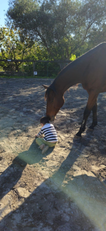 C’est un cheval adorable, profondément attaché à l’humain et doté d’une patience exceptionnelle. Il est particulièrement fantastique dans le relationnel avec les enfants, même les plus jeunes, et s’adapte merveilleusement aux personnes en médiation équine, y compris les patients atteints d’autisme.