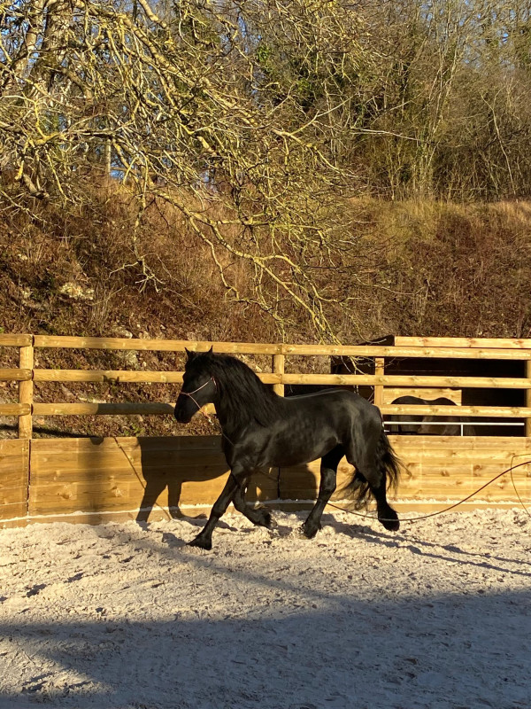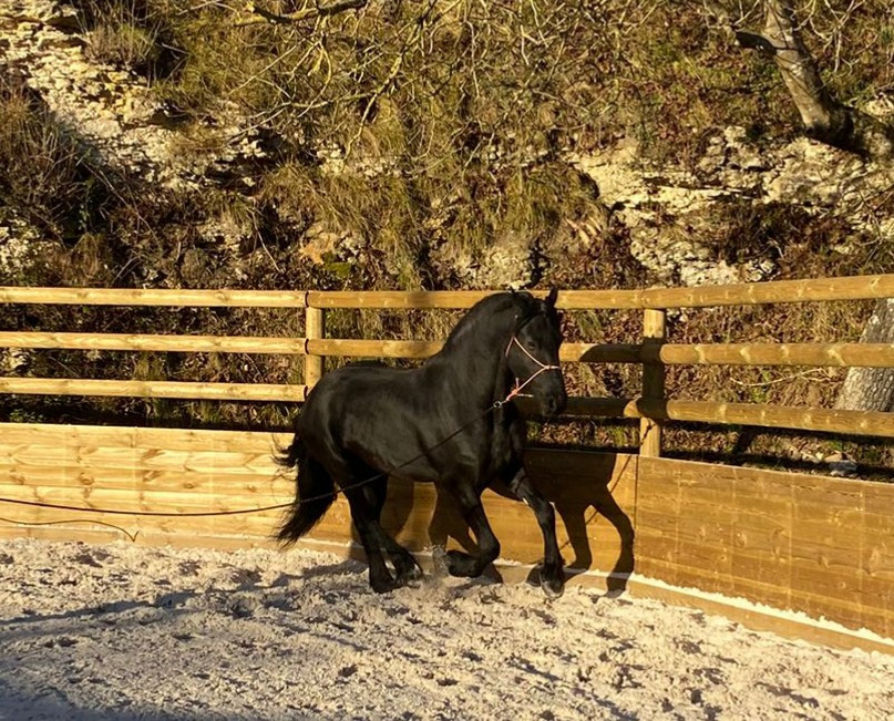 Vend cause manque de temps très joli frison mâle 5 ans. Très fin, bien éduqué à la longe. Commence la pose de la selle. Très fin, attachant, belle locomotion.