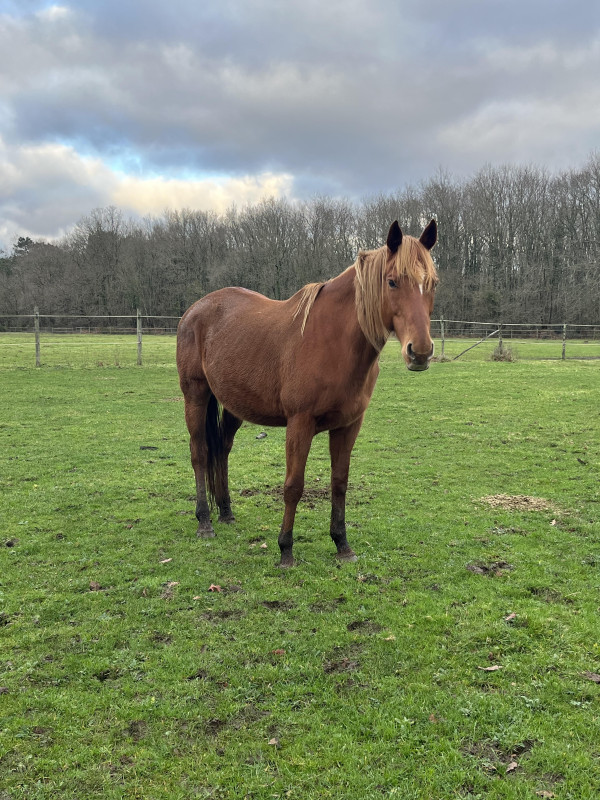 Jument Pur-Sang de 13 ans, alezane, environ 1m63, orientée poulinière.