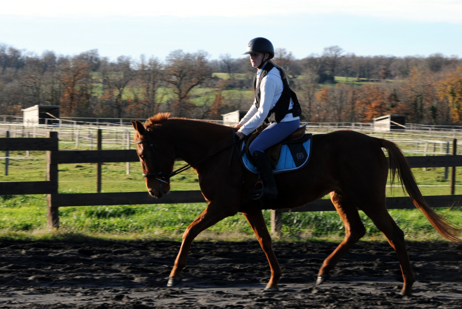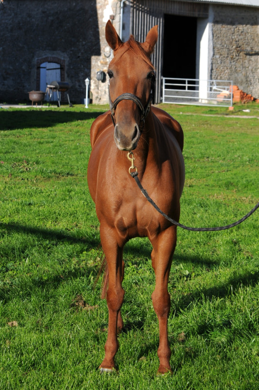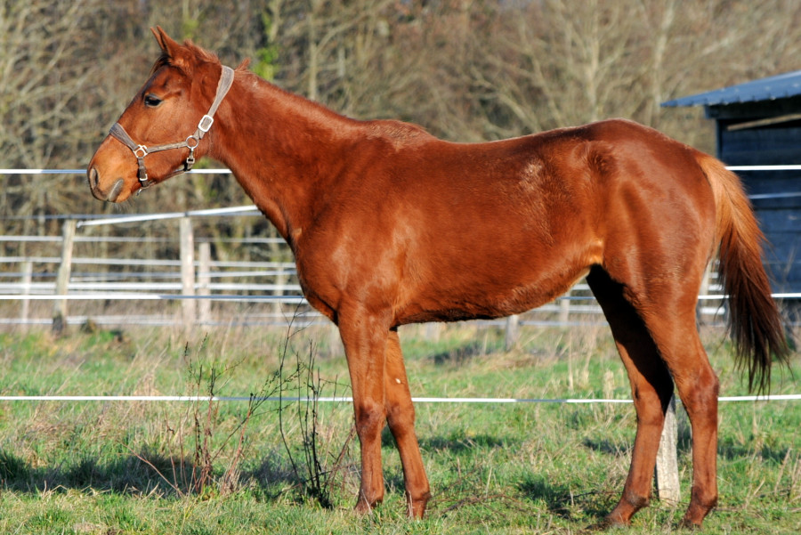Leptinella a été attelé au sulky. Elle est arrivée chez nous pour sa reconversion. C’est une jument qui apprend son métier sous la selle et qui est gentille montée. Elle fait preuve de beaucoup de bonne volonté pour bien faire. Leptinella n'est pas regardante en extérieur et commence à passer des petites croix. Leptinella est très "carrée" et bien orientée. Elle pourra convenir aussi bien pour du loisir/extérieur que pour du sport comme du dressage par exemple ou elle aura des prédispositions au vu de son modèle. Elle sera polyvalente. Leptinella sera adaptée à un cavalier à l’aise aux trois allures et sachant diriger.