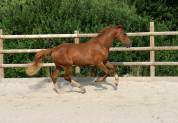 Dès les premières foulées, il capte le regard : son trot ample et souple, son galop fluide et montant, ainsi que son pas délié et généreux reflètent toute la qualité de ses origines.
