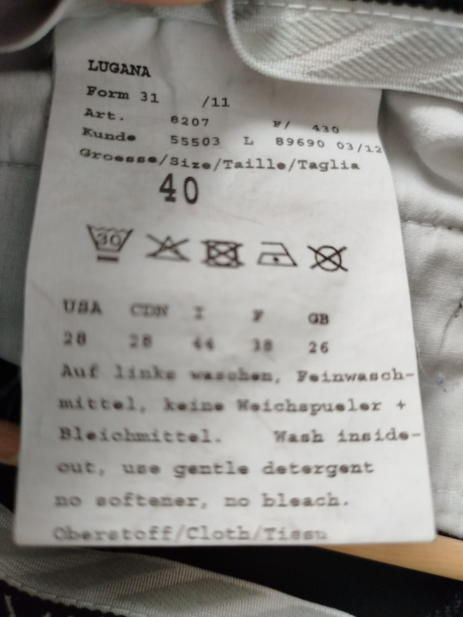 Taille allemande 40, France = 38