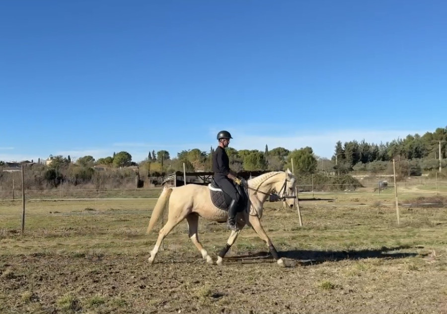 C’est un cheval avec de la présence, de la douceur et du potentiel, idéal pour un cavalier souhaitant évoluer tranquillement dans le respect du cheval, en loisir sportif ou travail sur le plat.