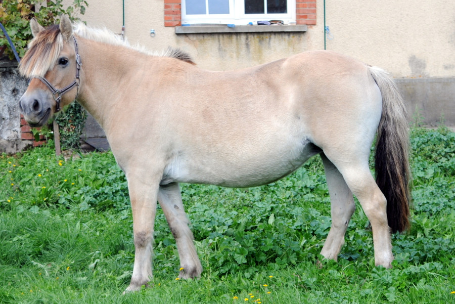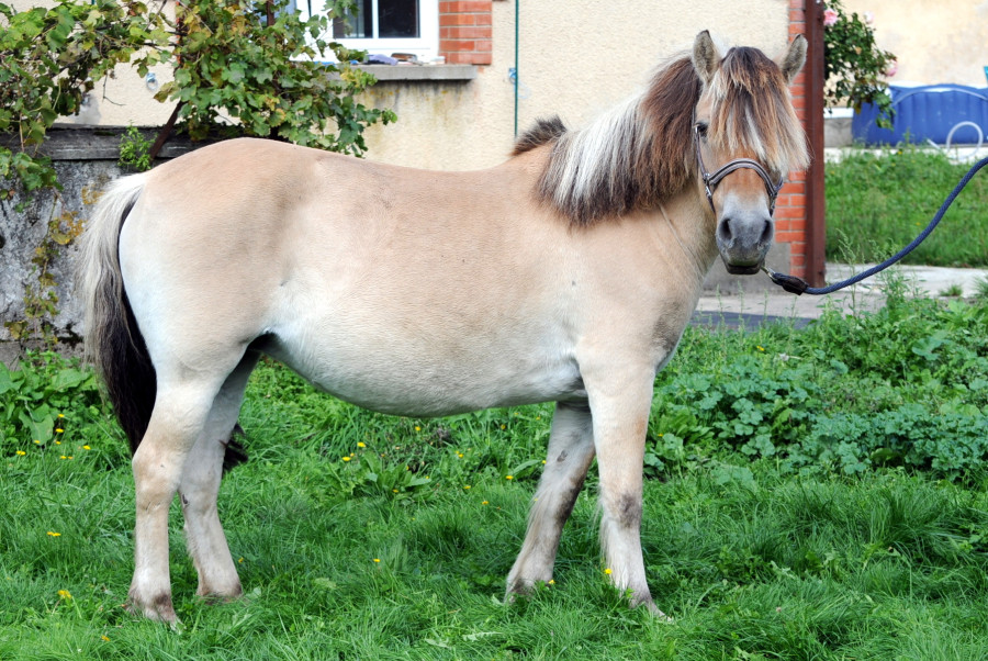 Claire, jument type fjord (déclaration non faite à la naissance), née en 2016 et toisant 1m38, est à la recherche de sa famille.