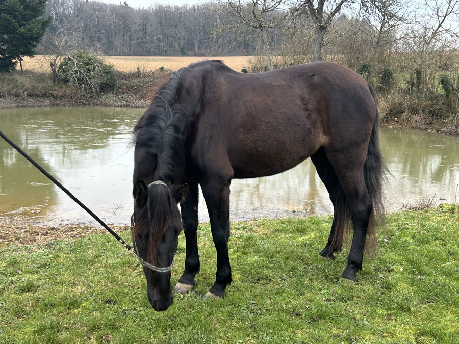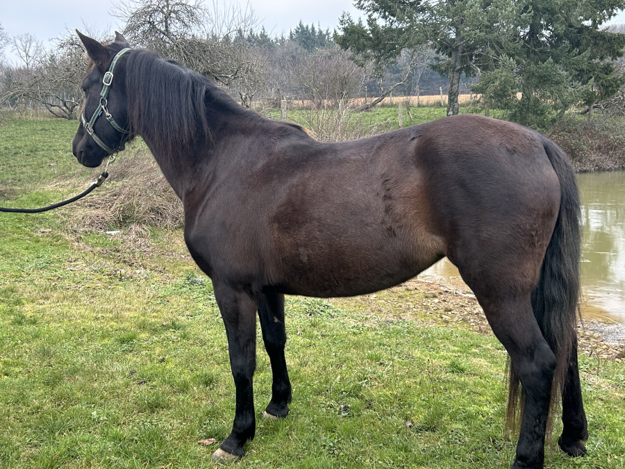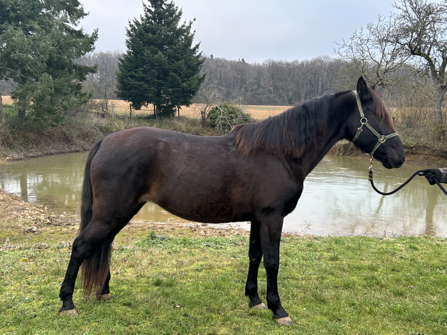 Jument plein papier espagnol de 6 ans, noire, 1m55.