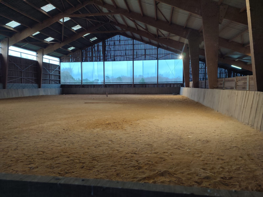 Au niveau installation, vous aurez accès à un bâtiment avec une belle zone de pansage, un manège éclairé de 20*30m, des box si besoin, une aire de douche extérieure et des chemins de balades au départ de la propriété.