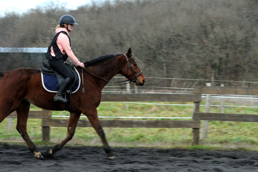 King a été mis au sulky. Il pourra être également retravaillé pour être attelé en "mode loisir". Il est très bien mis aux longues rênes pour les adeptes.