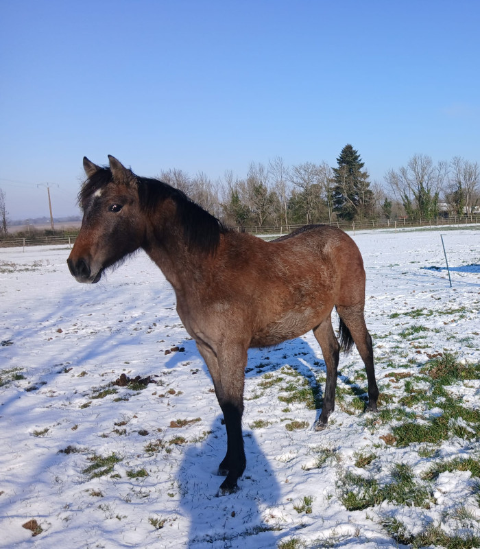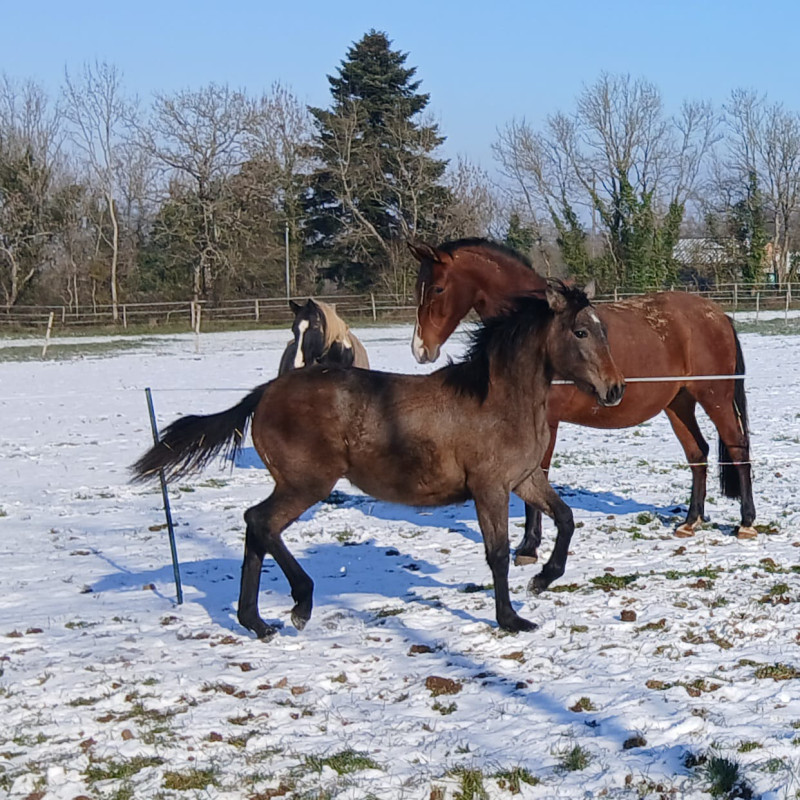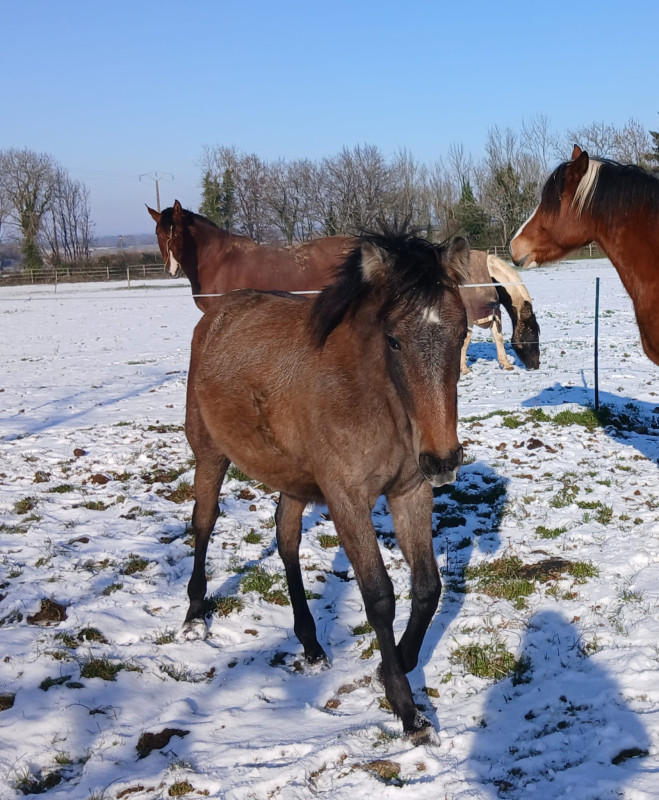 Pouliche bien manipulée, connaît la marche en main, donne les pieds, récemment sevrée via un sevrage progressif. Proche de l’homme et dotée de 3 belles allures qui ravira les amateurs de dressage ,d’équitation de travail ou de loisir.