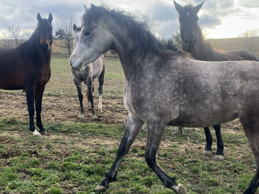 Vit au pré, en troupeau, facile avec les autres chevaux, respecte les clôtures. Ok couvertures et transport.