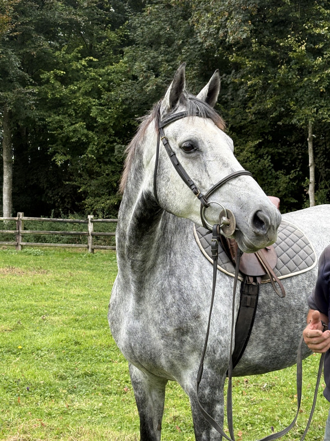 La pouliche travaille depuis 9 mois et connaît ses bases. Elle montre également un début de bases en dressage (mise sur la main, incurvation), il faudra le former pour le reste.