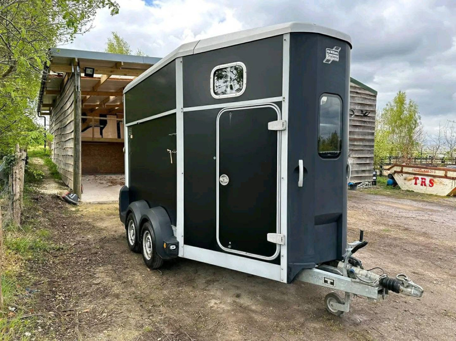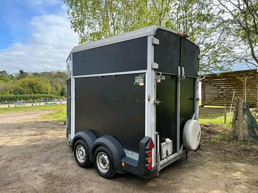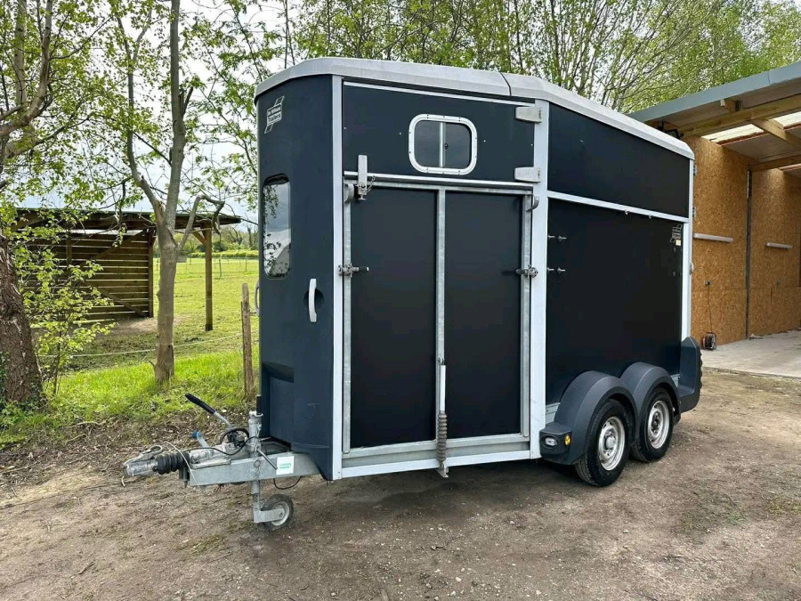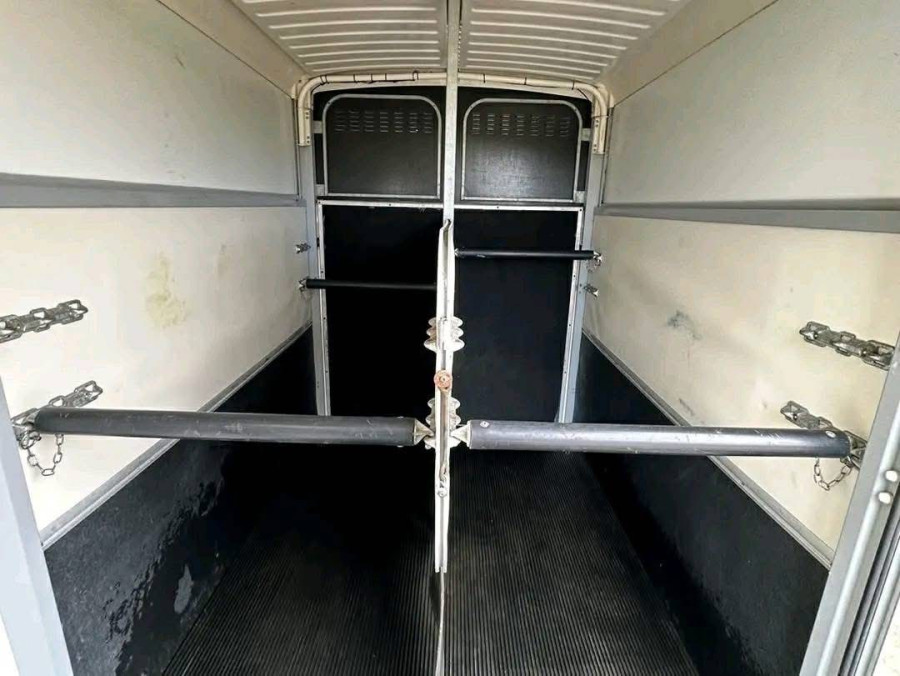 disponible en condition excellente, adapté pour transporter deux chevaux de 17,2 mains chacun. Doté d'un plancher en aluminium, de rampes latérales et arrière, d'une cloison centrale, de barres de poitrail et de sièges, ainsi que d'une caméra et d'un écran inclus. Poids à vide de 1000 kg, poids brut maximum de 2700 kg.