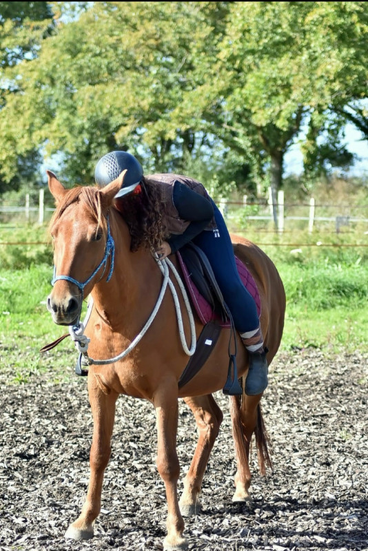 LiliCorn à un problème de santé ne lui permettant pas de faire du dressage ou du saut, c'est une jument destinée au travail à pied et à la randonnée.
