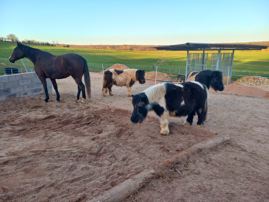Sols stabilisés dalles/sable (pieds au sec même l'hiver), paddocks sécurisés.