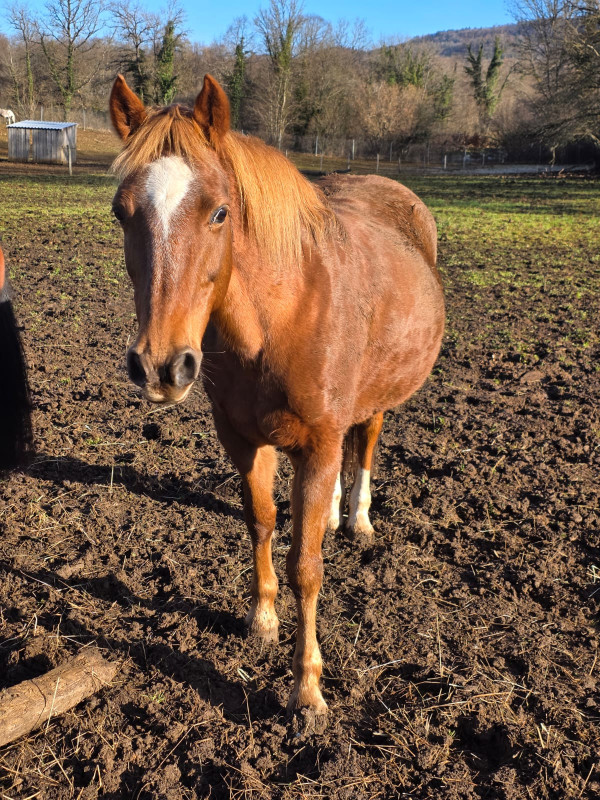 Vendu par le centre équestre jura sud. Ancienne ponette de club, ayant travaillé avec des enfants et des cavaliers de tous niveaux. À jour de vaccins, maréchalerie et suivie régulièrement.
