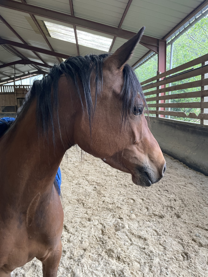 Vends très belle jument née en 2020. De couleur bai, puissante, bien dans sa tête et proche de l homme. Un pré débourrage avec de bonnes bases sans accroc.