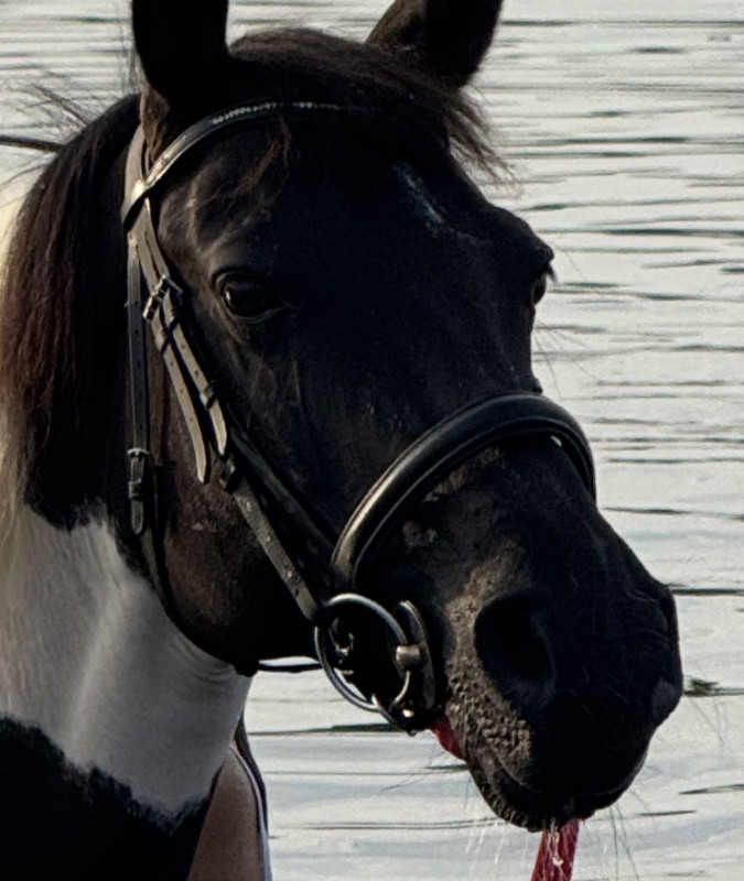 Couvre rein avec polaire intégré cheval : 15 euros Filet en cuir noir muserolle combiné avec frontal strass avec rênes inclus taille COB : 60 euros