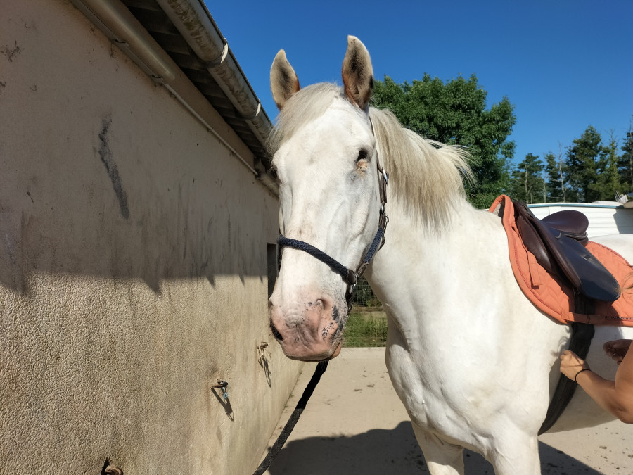 Ne peux pas partir en balade suite à une opération de son œil qui a été retiré en 2024 rien n'empêche qu'il peut être monté et manipuler il est très respectueux si vous souhaitez plus d'informations suite à son opération pour son œil on vous en donnera avec grand plaisir et les instructions mais il n'a pas de traitement juste un suivi tous les ans pour le deuxième oeil.