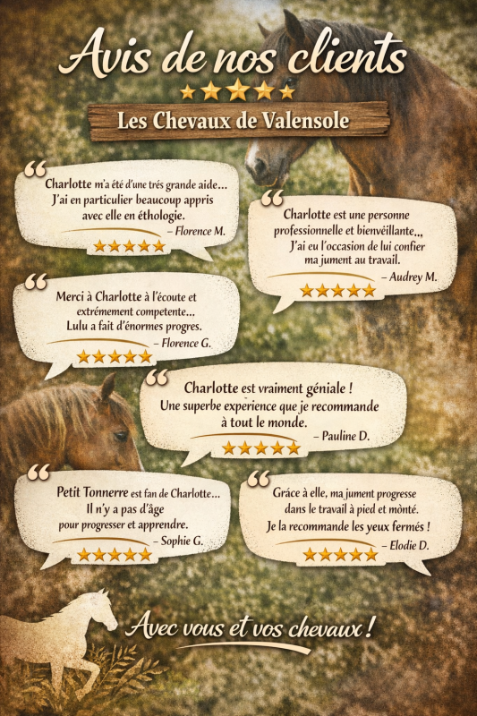 Tu veux comprendre ton cheval, progresser avec méthode et gagner en autonomie, sans séances isolées ni recettes toutes faites ? Je suis Experte fédérale en équitation éthologique et je propose un accompagnement sur la durée, adapté à tous les profils de chevaux et d’objectifs : comportement, éducation, équitation, légèreté et biomécanique.