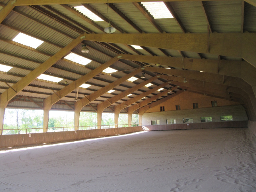 Le bâtiment principal comporte entre les 2 manèges : une salle de club, un logement pour l’exploitant et un autre plus petit pour un stagiaire ou apprenti ; le tout rénové fin 2025.