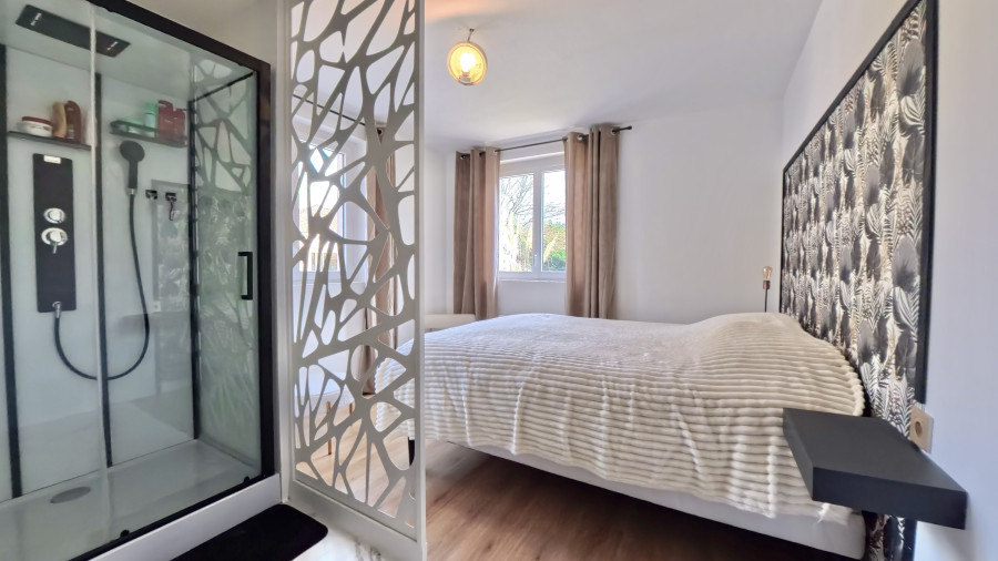 L’espace nuit propose 3 chambres dont une suite parentale, un bureau, un dressing, une salle d’eau et un WC séparé. L’ensemble de plain-pied garantit un confort de vie optimal et une accessibilité idéale.