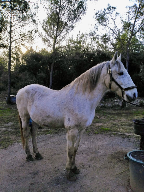 Hongre Lusitanien Pleins Papiers, robe grise, âgé de 17 ans, toisant 1m55.