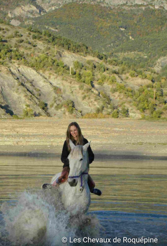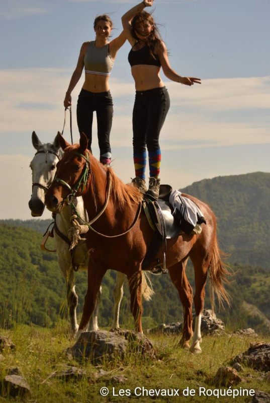 Galops dans les alpages, rando bivouac possible en pleine montagne selon la météo, travail à cru et en liberté sur le plat, initiation TREC et même voltige ou attelage pour ceux qui veulent