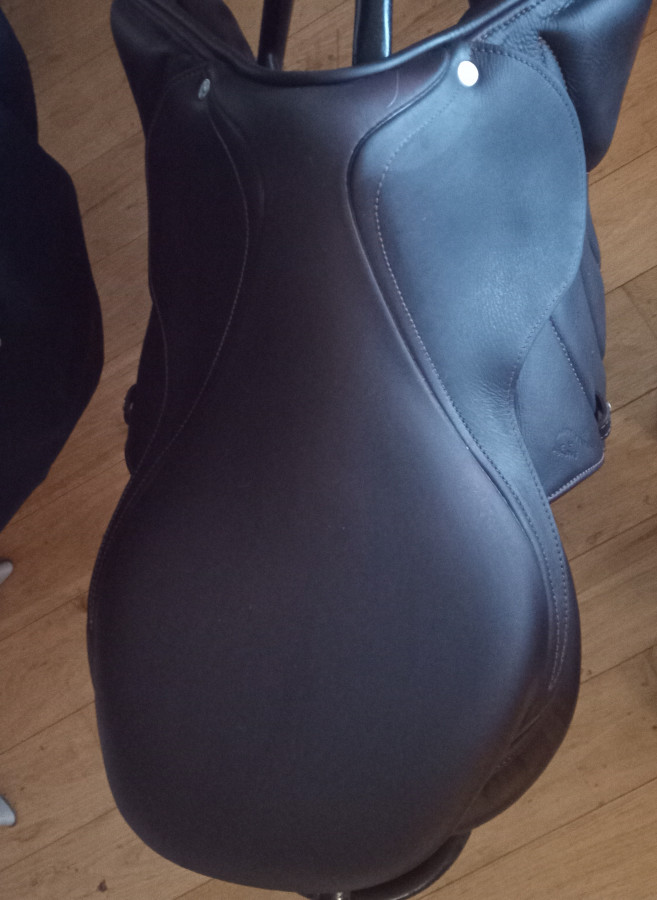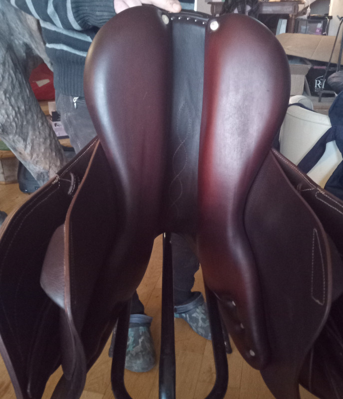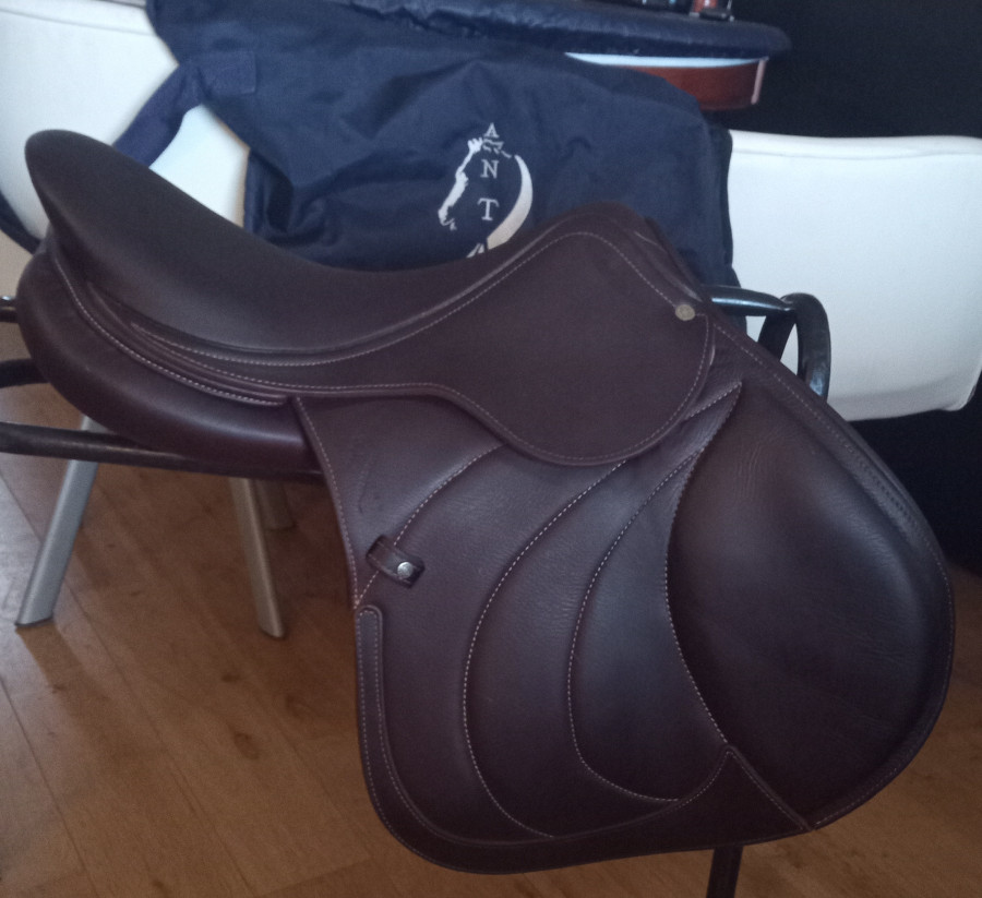 Selle d'obstacle (CSO) en cuir havane. Très confort