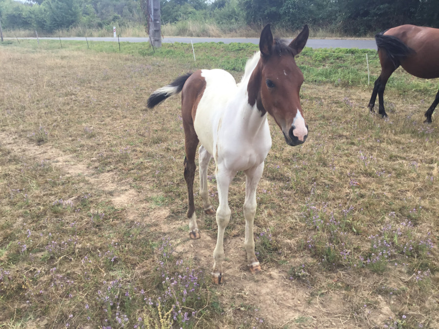 Pouliche pie très gentille manipulée