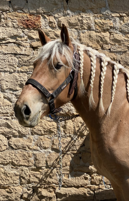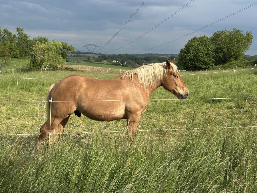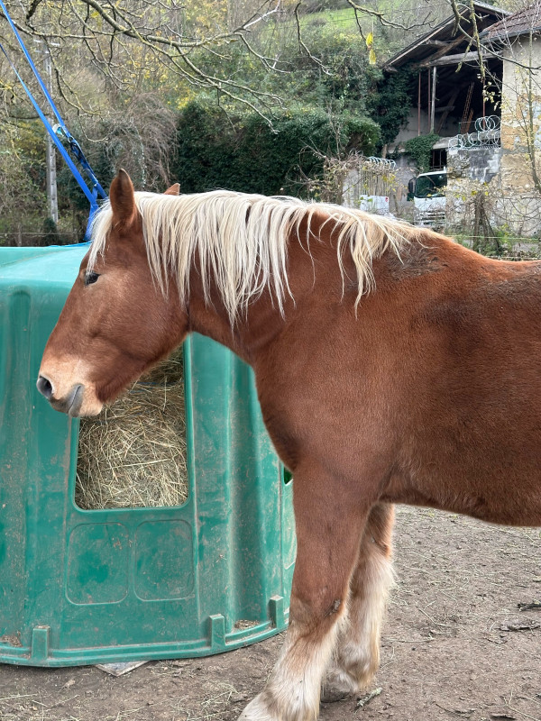 Propose à la vente joli hongre Trait Comtois, né le 21/05/2020 (5 ans).