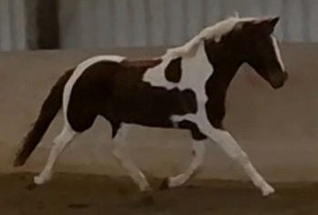 Très chic hongre, pie bai, modèle porteur, 1m50 actuellement, 3 ans, papiers OC. Débute son apprentissage mais a déjà de bonnes bases de travail à pieds. Il est très proche de l’homme, adore qu’on s’occupe de lui et très intéressé par le travail. A jour vaccins, maréchal, ostéo. Connait la vie au champ a plusieurs et connait le boxe. Cheval intéressant à finir de former avec un potentiel intéressant.