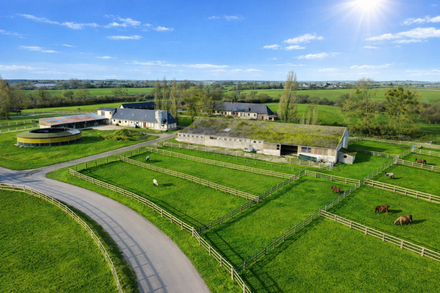 À l’extérieur, la propriété bénéficie d’une piste de trot en mâchefer d’environ 800 mètres ainsi que d’une ligne droite en sable de 600 mètres. Dix paddocks individuels sont présents et les autres pâtures sont équipées d’abris. L’ensemble des parcelles est clôturé avec lisses et poteaux bois.