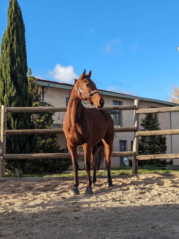 Je propose une demi, tiers ou quart de pension sur Sketch, Pur-Sang de 11 ans, gentil et attachant.