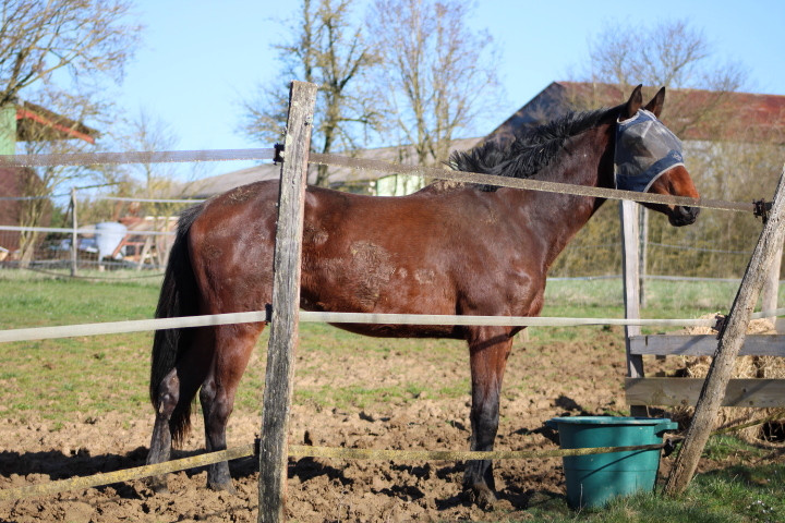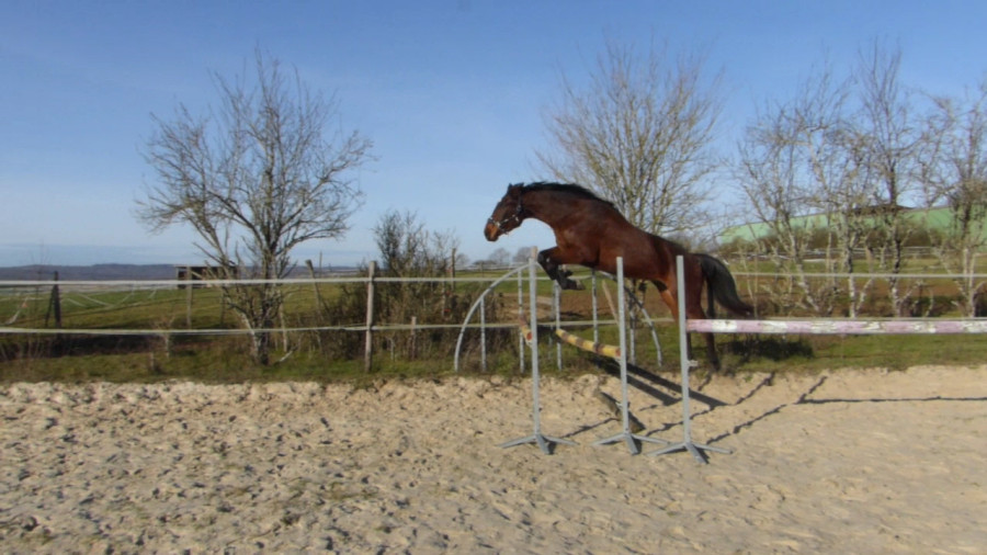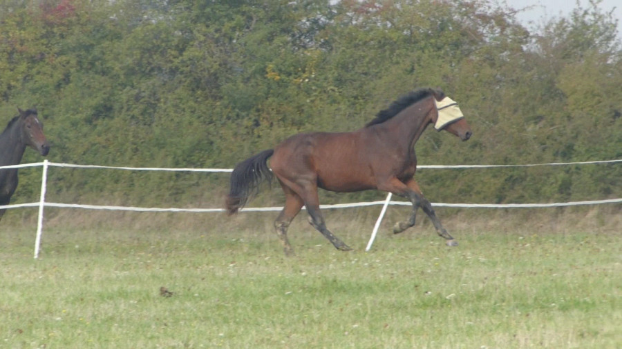 Poulain ayant énormément de force et de caractère, qui peut mordre quand il est contraint, pas du tout destiné à un cavalier amateur.