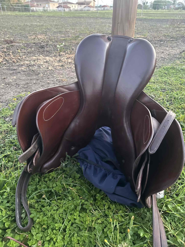 Selle Prestige, modèle Meredith à vendre. Taille adaptée pour un cavalier de morphologie assez fine (17" estimé).