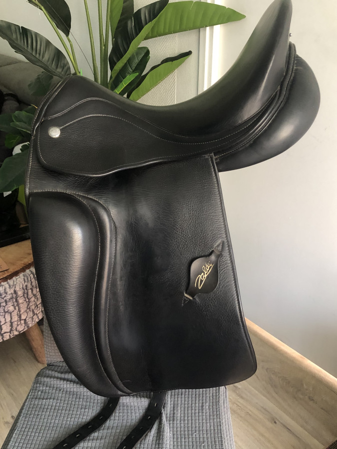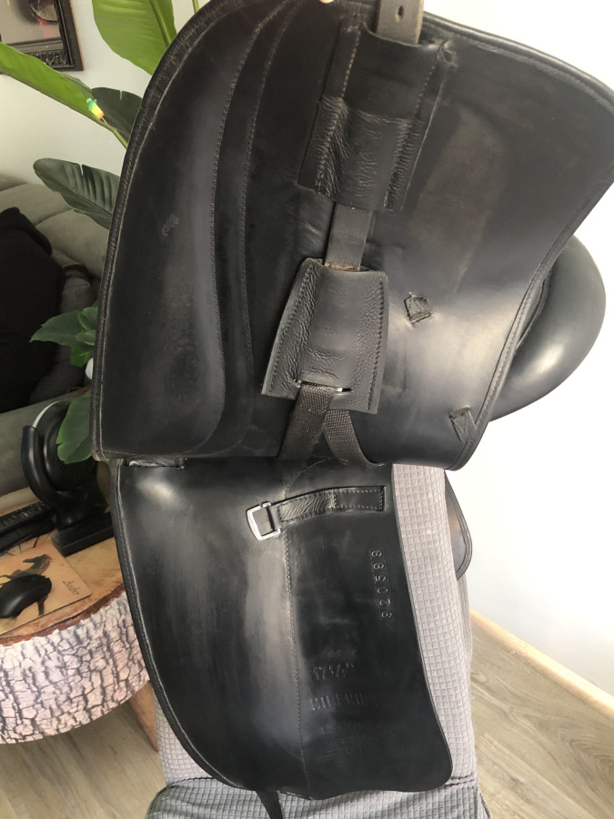 En raison de la mise à la retraite de mon cheval, je me sépare de ma selle de dressage Zaldi Milenium noire, taille 17,5”. PRIX EN BAISSE: 700€ raisonnablement négociable.