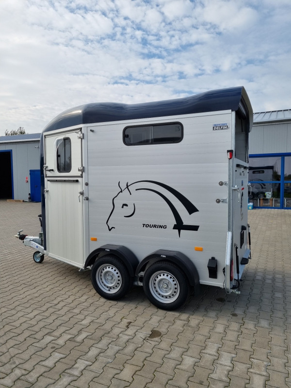 Remorque deux places haut de gamme, équipée d'une rampe avant, d’une sellerie avec porte-selles, d’un plancher et de parois en aluminium, et d’une suspension Pullman II pour un transport sécurisé et confortable. Conçue pour la praticité, la durabilité et le bien-être des chevaux.