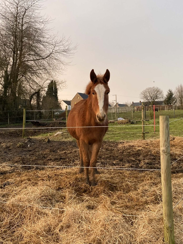 Pablo est extrement gentil mais pas debourré. Il est très proche de l'homme et adore être brossé, on lui passe le licol sans problème mais n’est pas plus manipulé.