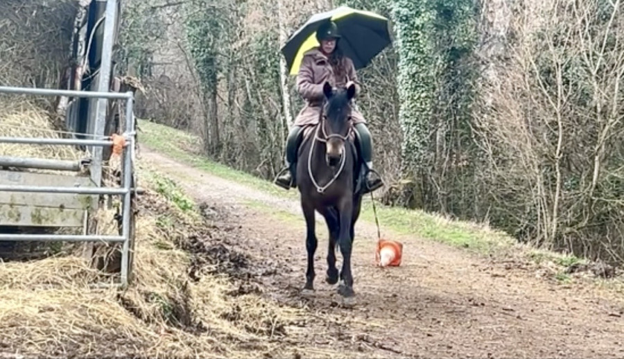 Elle accepte le cavalier au pas et au trot.