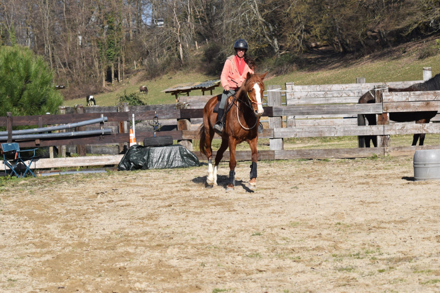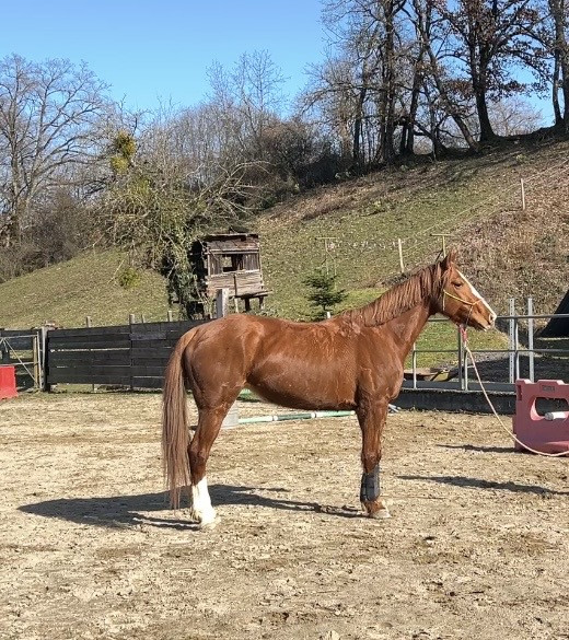 Elle n’a jamais couru. Issue d’un élevage, elle a été mère porteuse et découvre aujourd’hui sa vie de jument de selle. Elle galope naturellement bien et progresse régulièrement dans le calme.