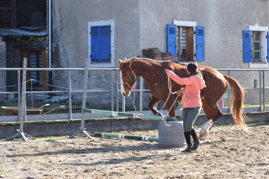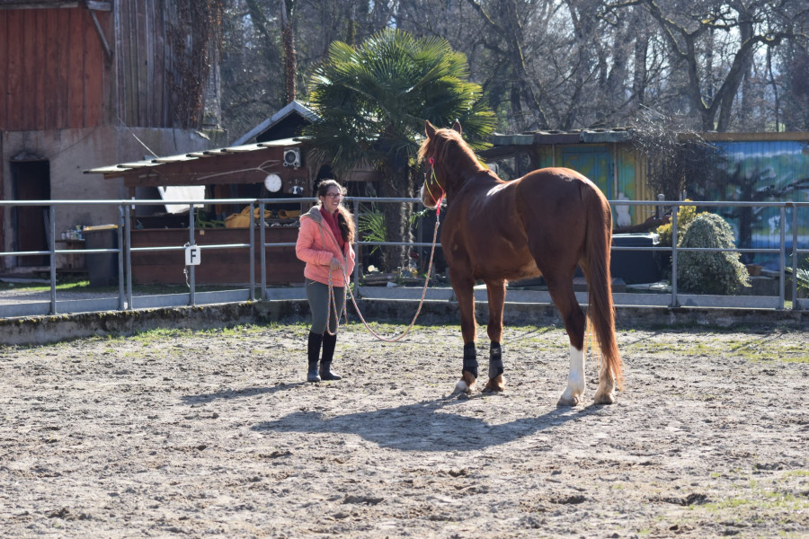 Au quotidien, c’est une jument agréable à vivre : sage au pansage, douche OK, vit en troupeau pieds nus sur terrain en pente.