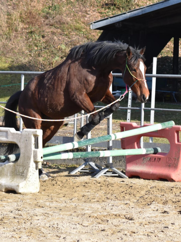 Jument proposée uniquement pour une bonne maison, avec un cadre cohérent et respectueux de son âge et de son évolution.