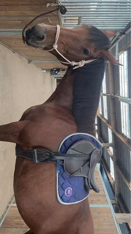 Jument à remettre au travail mais qui connaît énormément de choses et adore apprendre. Pour plus d’informations, n’hésitez pas à me contacter. je vends également l’équipement complet, celle bride équipement de couverture etc. n’hésitez pas à me contacter pour plus d’informations ou de photos.